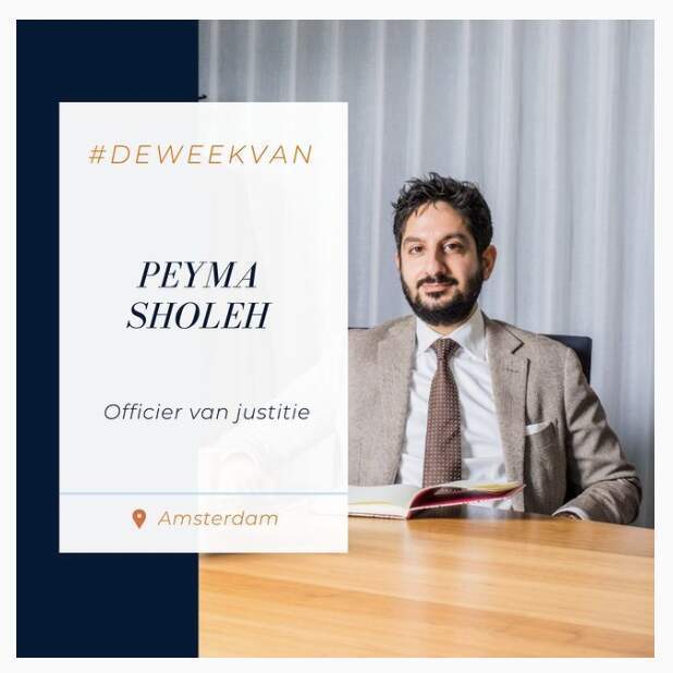 Na zijn rechtenstudie werkte Peyma Sholeh 7 jaar lang als advocaat bij verschillende kantoren in Amsterdam en Den Haag. In 2019 stapte hij over naar het OM, waar hij officier van justitie werd voor het Arrondissementsparket Amsterdam. Over deze carrièrestap is hij nog steeds zeer tevreden. 'Als advocaat dien je je cliënt, maar als officier van justitie dien je de samenleving. Dat geeft mij veel meer voldoening.'